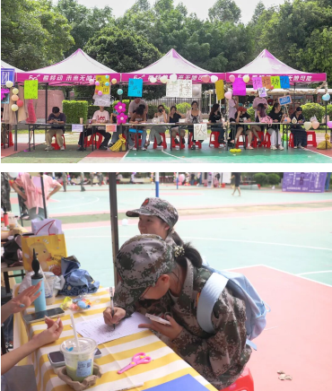 一处处社团摊位沿着篮球场铺开,音乐与欢笑交织成一道独特的风景线。各类社团各展所长,“花式”招新。路过的新生们纷纷驻足,有人直奔心仪已久的社团,有人被小众却有趣的社团吸引,带着好奇深入了解。填写报名表的笔尖沙沙作响,每一份表格落下,都是一次热爱的落点,也是一段大学故事的开端。