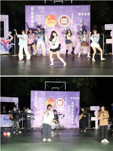 本次纳新盛典节目单堪称“视听盛宴”:震撼全场的表演以随舞来讯速抓住观众注意力、调动现场气氛,为接下来的表演奠定完美的基调。正式表演以柏拉徒乐队歌曲拉开序幕,用摇滚旋律点燃全场热情。接着的表演不仅有校啦啦操队的男团舞、DR街舞协会的爵士舞、女团舞等街舞表演动感十足,将潮流魅力展现得淋漓尽致。还有校合唱队、吉他声乐社的演唱歌曲,让人流连忘返。值得一提的是校舞蹈队的敦煌舞、古典舞,以优美舞姿演绎传统文化之美。