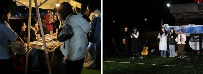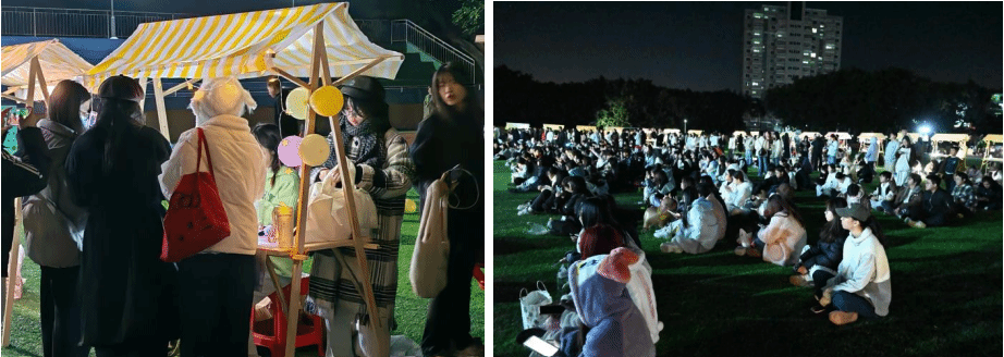 活动的顺利推进离不开多方力量的协作,自强社干事和创新创业部门紧密配合,各社团踊跃参与摆摊,摄影协会穿梭在场内,用镜头捕捉每一个热闹瞬间。与此同时,吉他声乐社的现场live同步开演,悠扬的旋律回荡在田径场上,让逛集市的师生们沉浸式感受欢乐氛围。