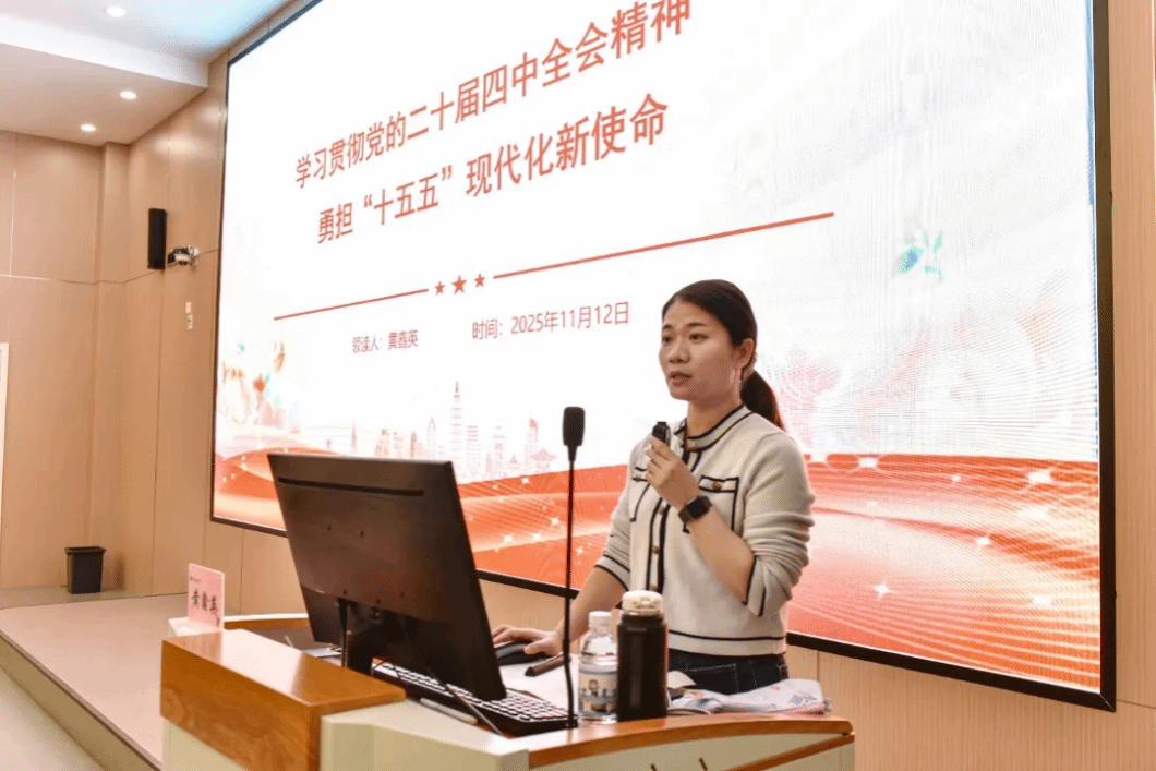 黄鑫英老师紧扣学习贯彻党的二十届四中全会精神,围绕“勇担‘十五五’现代化新使命”这一核心,结合全会公报的精髓要义,系统阐释了“十五五”时期我国经济社会发展的目标方向、思想遵循、六大原则与重点任务,更立足团支部工作实际,为团支书们梳理工作思路、细化实践路径,助力团日活动从“有形开展”迈向“有效引领”。同时,她鼓励学生干部们以“领学人”的姿态,带动身边同学学深悟透全会精神,让理论之光照进日常实践,在校园里形成“人人学精神、个个践使命”的学习氛围。