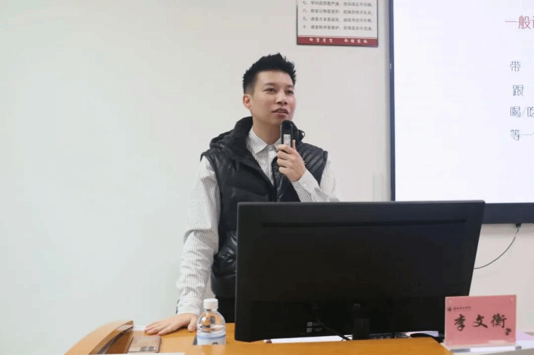 讲座上,李文衡老师以沟通中的障碍因素为切入点,紧扣“解码社交礼仪奥秘,涵养青年精气神”主题,围绕“了解沟通中的魔鬼数字”“语言礼仪”“培养悦耳声音,学会重点表达”“调频使沟通更有效”四个方面展开讲解。面对校园中常见的言语“软暴力”与矛盾,他强调,要善用文雅措辞、以“我”代“你”表达感受,通过“说事实、说感受、说希望”的三步法化解分歧,同时秉持换位思考、将心比心原则。此外,李老师还结合大学生日常生活交往的场景,融入趣味练习与真实案例,让学员们在互动体验中掌握实用礼仪技巧,在轻松氛围中实现礼仪知识的内化与实践。