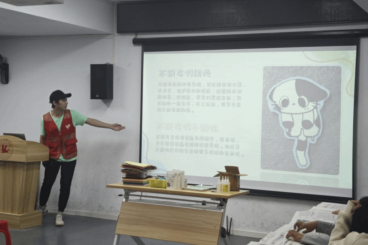 不仅如此,活动还开展了关于不织布的手工教学活动。在志愿者指导下,孩子们用彩色不织布剪裁拼贴,创作出独具个性的艺术作品。柔软的材质让孩子们能够自由发挥,将灵感于指尖创造。这项活动不仅锻炼了动手能力,更让孩子们在创作中体验到了个性化创造的乐趣。