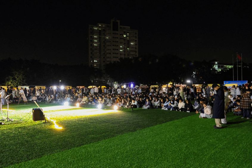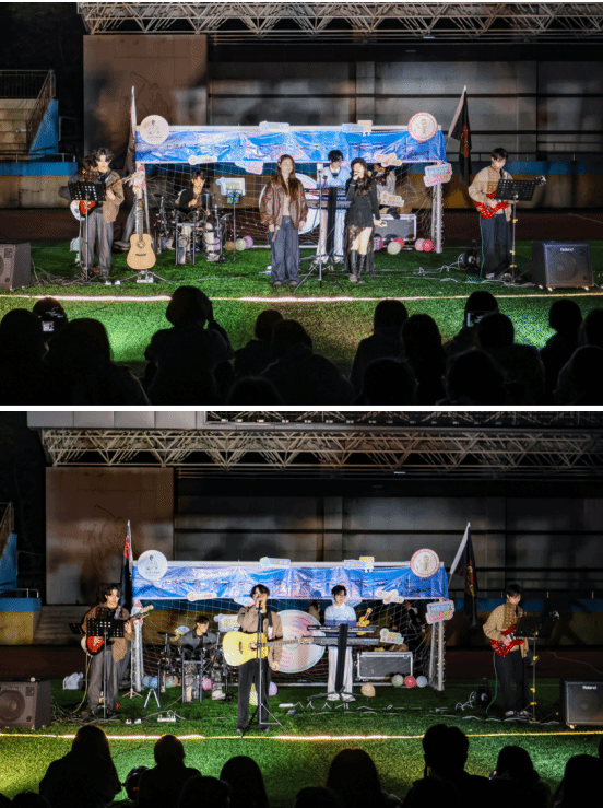 活动当晚,伴随舞台灯光的亮起,柏拉徒乐队以一首激昂的曲目《冲动》震撼开场,强烈的鼓点、激昂的旋律瞬间点燃全场气氛。吉他声乐社带来的歌曲《原谅》中,成员们以充沛的情感与清澈的和声,深深触动观众们的情感。此外,乐队与社团的跨界合作等节目也亮点频出。演出过程中,穿插的采访等互动环节,让观众深度参与其中,现场氛围持续升温。在柏拉徒乐队和吉他声乐社共同表演的《鲜花》中,活动落下帷幕,歌声在夜空中回荡,将活动氛围推向最高潮。