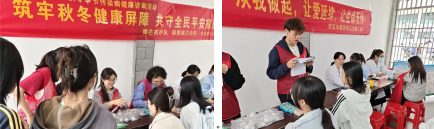 活动现场,医护人员通过健康咨询、科普手册发放、血压血糖义诊等形式,向现场师生细致普及流感、诺如病毒感染性腹泻、手足口病等常见秋季传染病的传播途径、典型症状及预防要点。特设的流感知识答题区互动热烈,同学们踊跃抢答,以学促用,既检验了知识掌握度,更激发了健康知识学习热情,让科学防护理念深入人心。