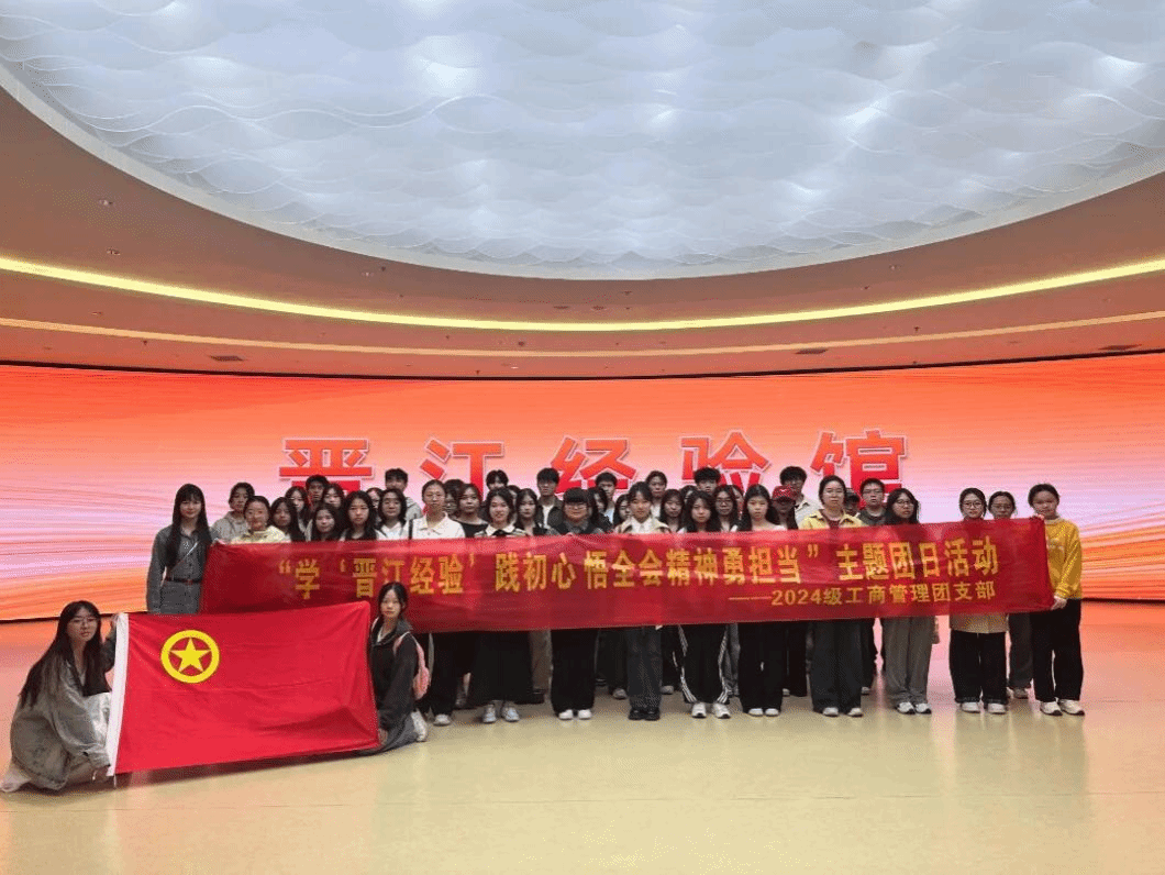 11月25日,为学习贯彻党的二十届四中全会精神,我院2024级工商管理团支部开展以“学‘晋江经验’践初心,悟全会精神勇担当”为主题团日活动,前往晋江经验馆开展参观实践活动,将“学经验、悟精神、担使命、谋未来”的多层目标融入实践中。