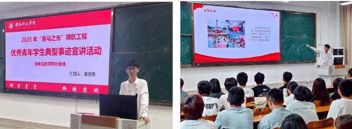 为深入贯彻落实习近平总书记关于青年工作的重要思想,充分发挥榜样学生的示范作用,强化其在思想与实践上的引领和指导效能。近日,我校各二级学院团委陆续开展以“2025年‘青马之光’领航工程优秀青年学生典型事迹”的主题宣讲会。
