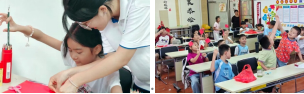 志愿者们向小朋友们介绍节日起源与传统习俗,接着带领他们制作茱萸花贺卡,并鼓励小朋友将制作完成的作品送给长辈,让小朋友们深入了解了重阳节的文化底蕴,在动手实践中传承了传统美德。