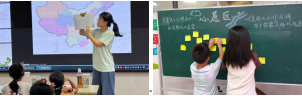 志愿者们围绕“中国地图的轮廓与疆域”展开分享,从“雄鸡形状的祖国”趣味比喻切入,顺着行政区划的划分逻辑,梳理各省分布特点,并借助动画示意图,将地域差异讲解得直观易懂,帮助小朋友们熟悉国家疆域的整体轮廓,增强他们的国家认同感与民族自豪感。