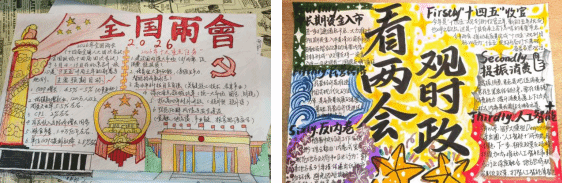 活动最后,团员们共同参与两会主题海报创作与宣传。大家围绕两会精神、青年使命、家国情怀等主题设计海报,用图文结合的方式传递两会声音、展现青春担当,同时也进一步扩大学习覆盖面。