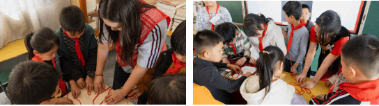 在雷锋精神主题课堂中,志愿者以通俗语言讲述雷锋事迹、播放影像资料,解读助人为乐、无私奉献、勤俭节约的精神内核,通过互动分享引导学生畅谈感悟,激发争做新时代小雷锋的热情。课堂融入传统手工艺体验,志愿者分步示范、手把手指导孩子们完成红色中国结制作,让学生在实践中感受绳结文化,凝聚向上向善力量,将雷锋精神与文化记忆深植心中。