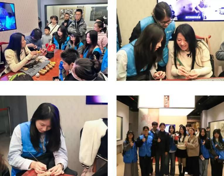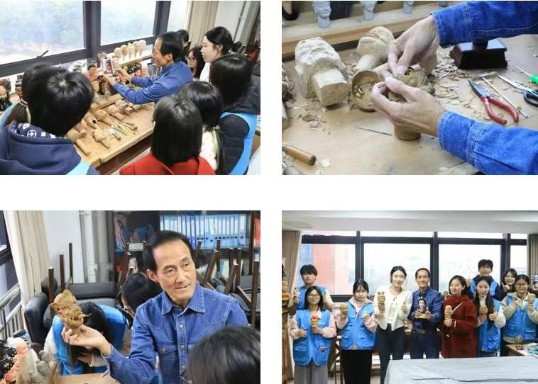 在非遗馆黄雪玲工作室,第四代木偶头雕刻传承人黄雪玲正手持刻刀,在樟木上细细勾勒眉眼,樟木碎屑随刀游走簌簌飘落。队员们了解到,一个完整木偶头需经27道工序,耗时整整一周,若遇潮湿天气,风干周期还需延长,方能避免开裂。“我这辈子就守好传统技艺,原汁原味传下去,创新的事交给有想法的年轻人。”黄老师的话语质朴而坚定。队员们还亲手体验了基础雕刻,在握刀、下刀的专注中,读懂“宁慢勿急”的匠人心。